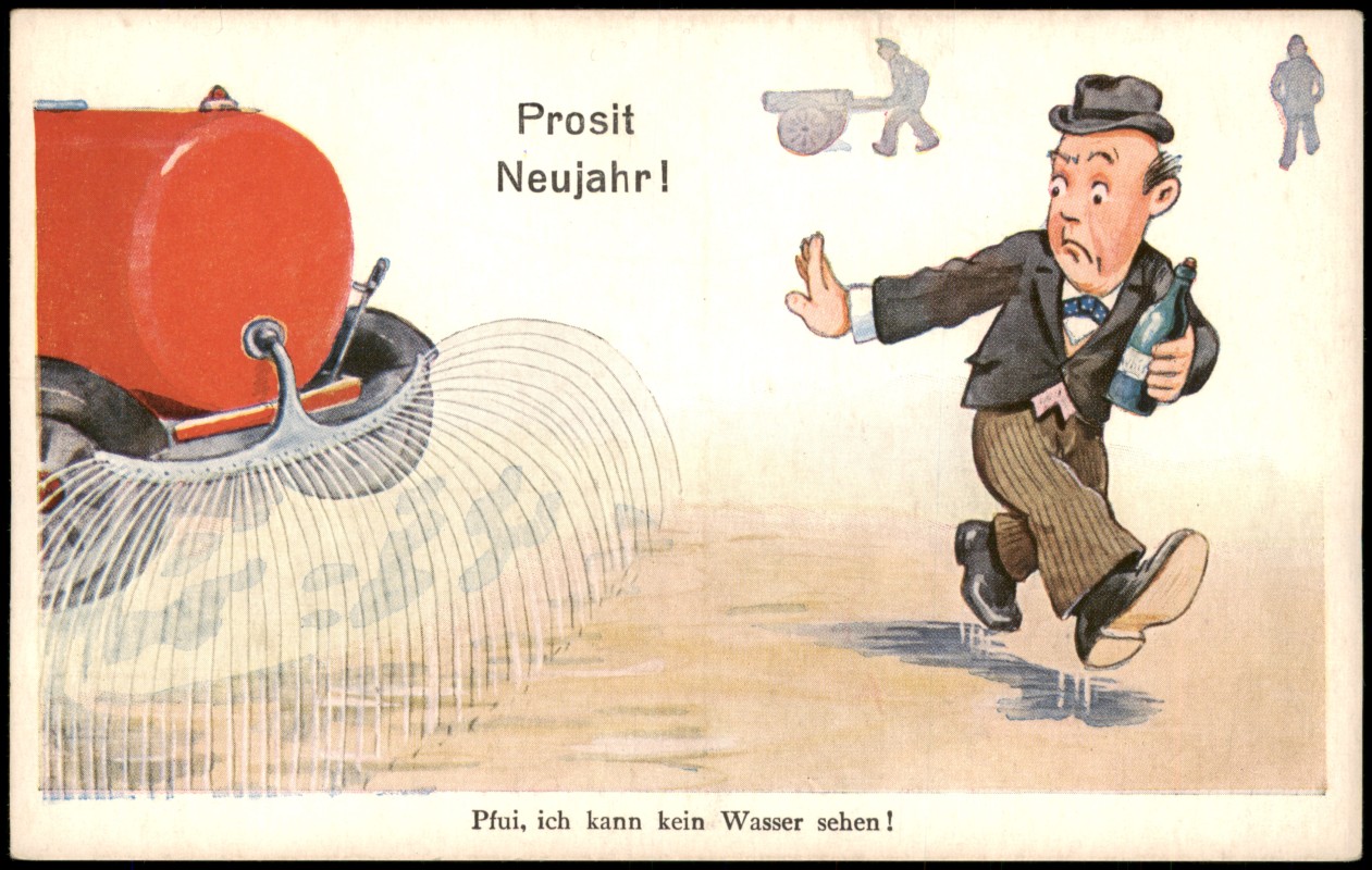 - Neujahr Sylvester New Year "Pfui, ich kann kein Wasser sehen!" Prosit Neujahr