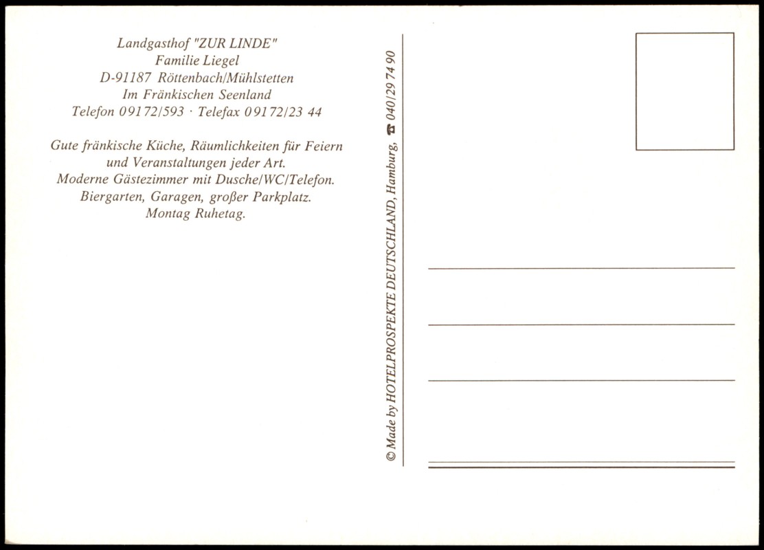 Photo Card: Landgasthof ZUR LINDE Röttenbach Mühlstetten Fränkisches Seenland