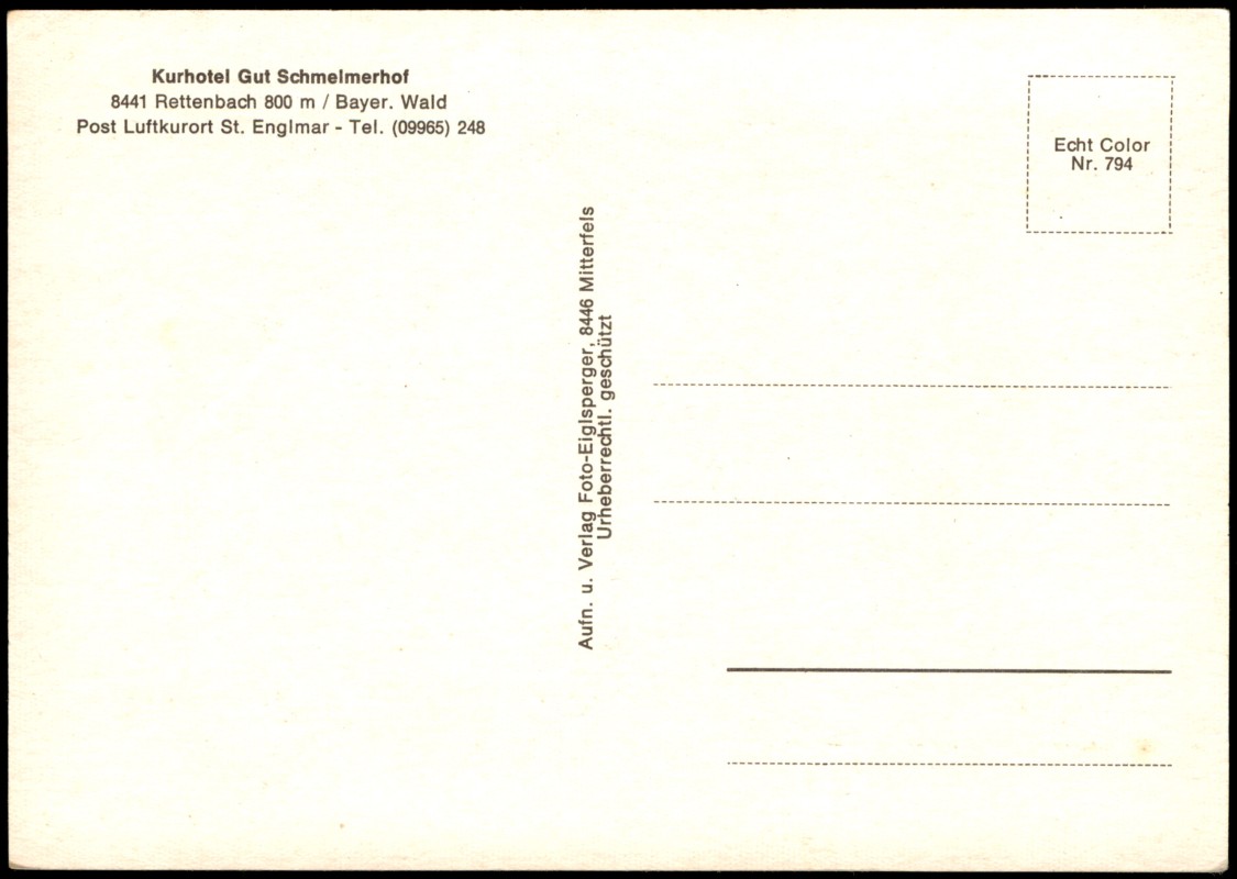 Photo Card: Kurhotel Gut Schmelmerhof Rettenbach Bayer. Wald - Rettenbach-Sankt Englmar