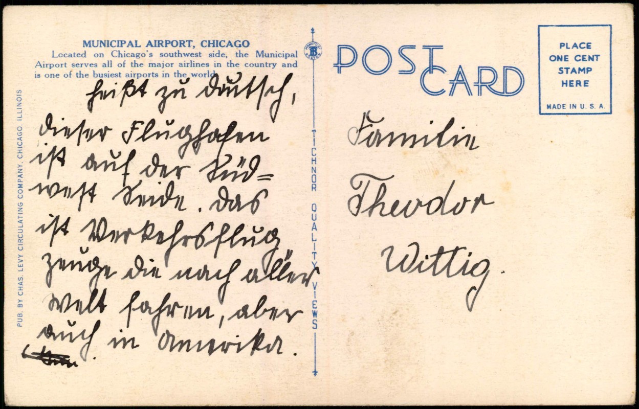Postcart: Flugahafen Airport Propeller Flugzeuge - Chicago