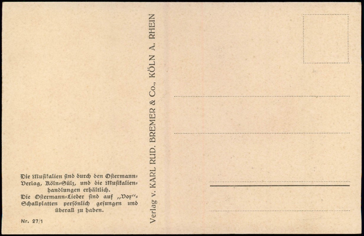Postcart: Kölner Lied von Willi Ostermann (Liedkarte Hut erop!) - Cologne