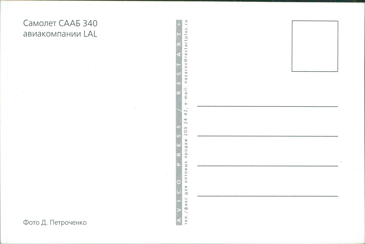 Postcart: Flugzeug Airplane Avion Lithuanian Airlines Самолет СААБ 340