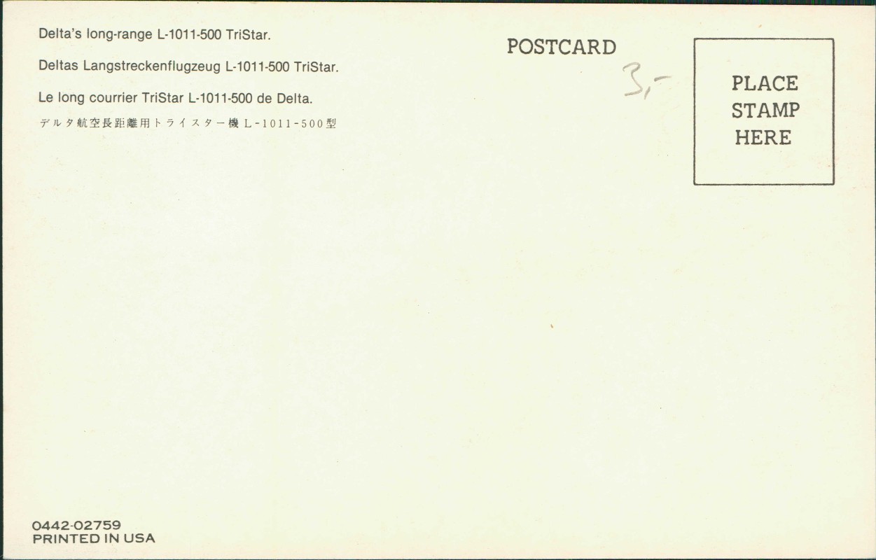 Postcart: Flugzeug Airplane Avion Delta L-1011-500 TriStar.