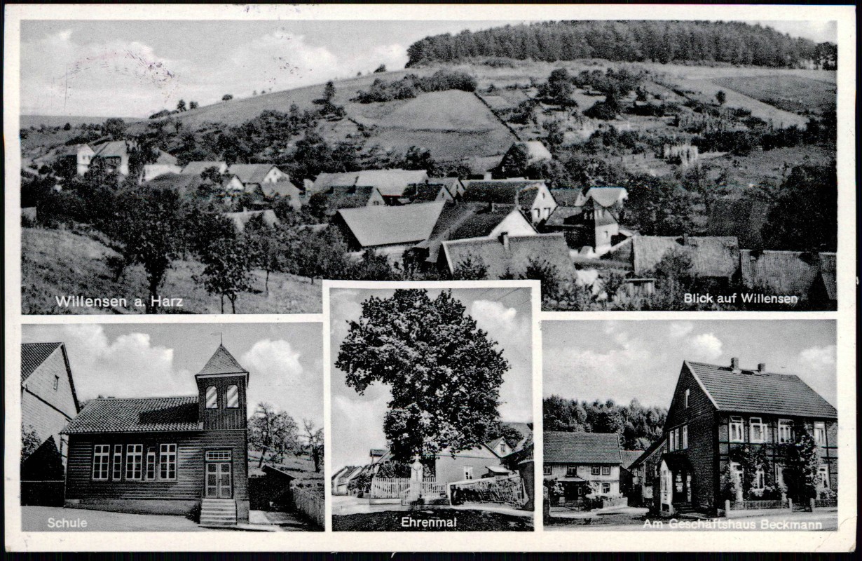 Postcart: Stadt, Schule, Ehrenmal, Geschäft - Willensen Harz-Bad Grund (Harz)
