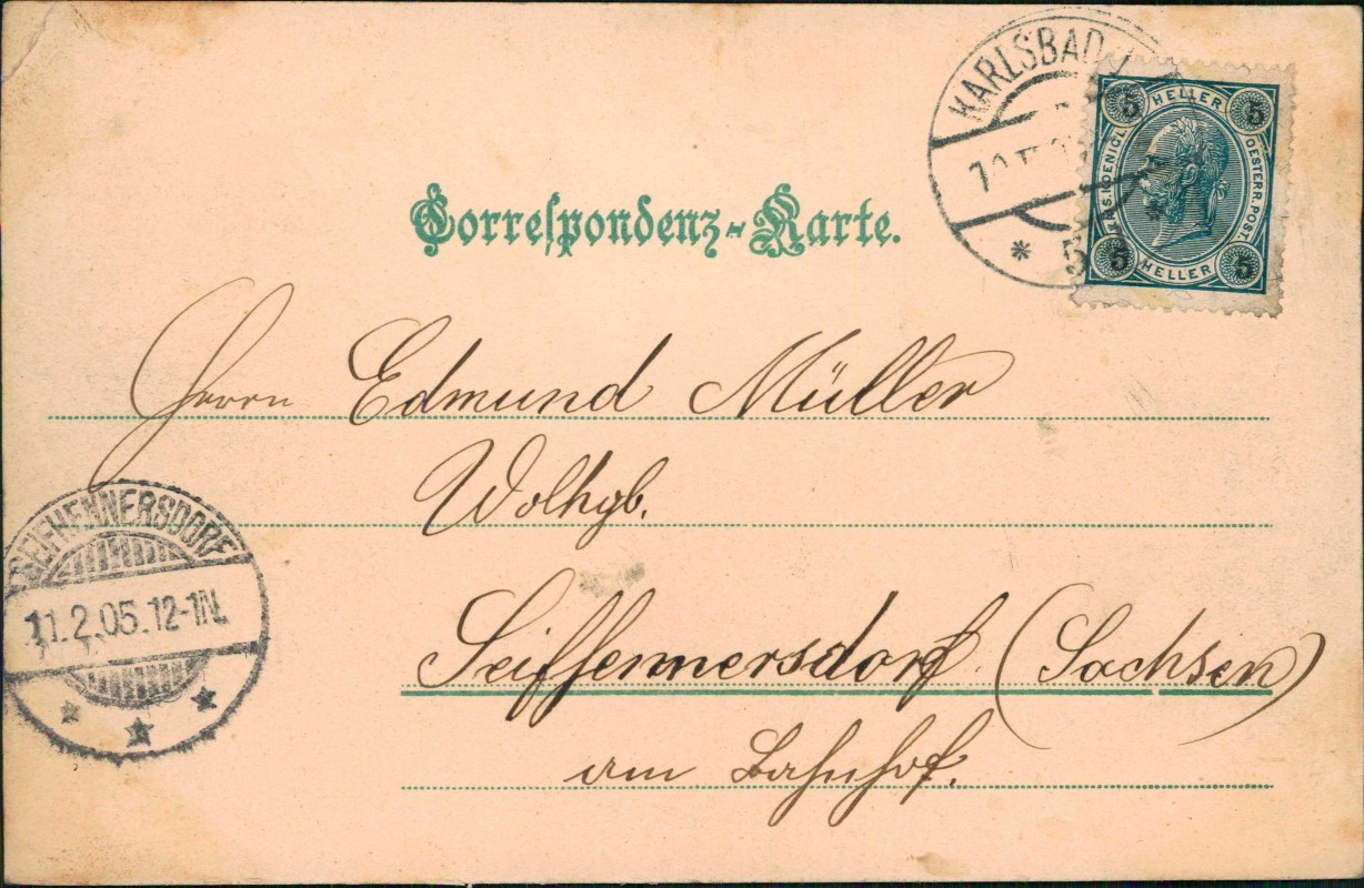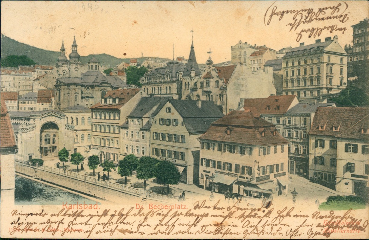 Postcart: Dr. Becherplatz Handcolorierte AK - Karlovy Vary
