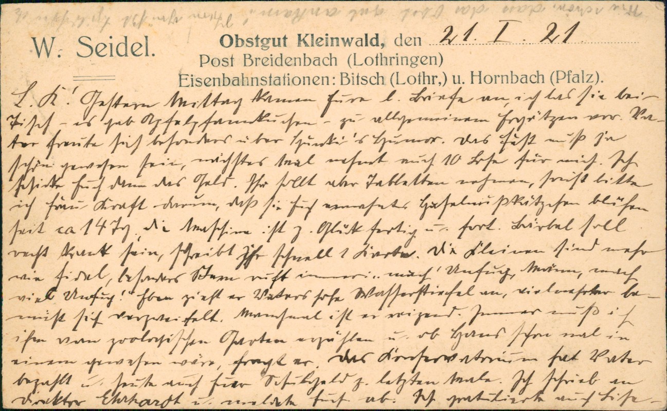 - Werbekarte Obstgut Kleinwald Breidenbach Lothringen
