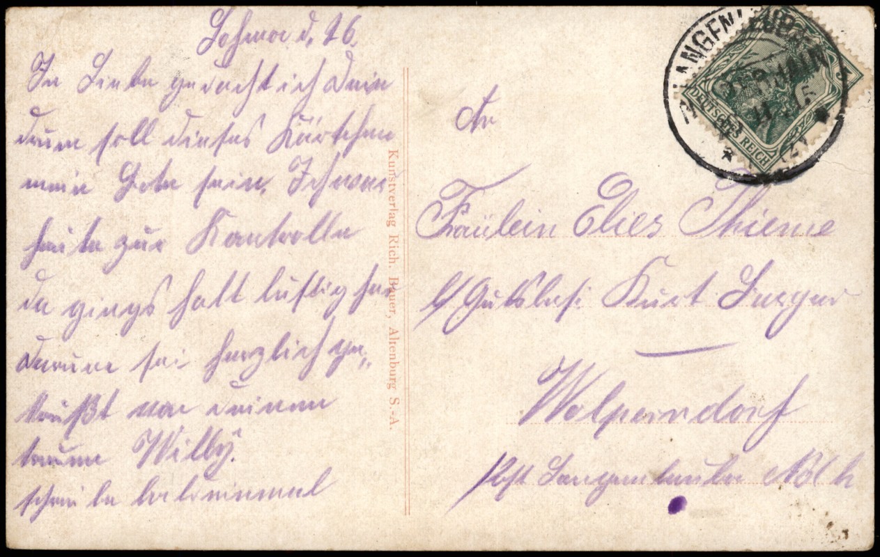 Postcart: Gruss v. Kiesshauers Gasthof Inh. Edwin Härtig Konzert Ballsaal Speisesaal - Langenleuba-Niederhain