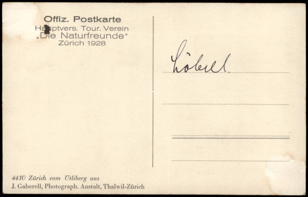 Postcart: Verein „Die Naturfreunde" - Totale - Zurich