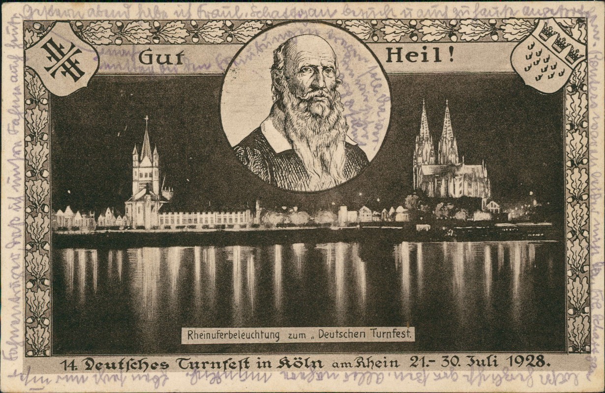 Photo Card: Deutsches Turnfest "Gut Heil" Sonderkarte Stadtansicht bei Nacht - Cologne