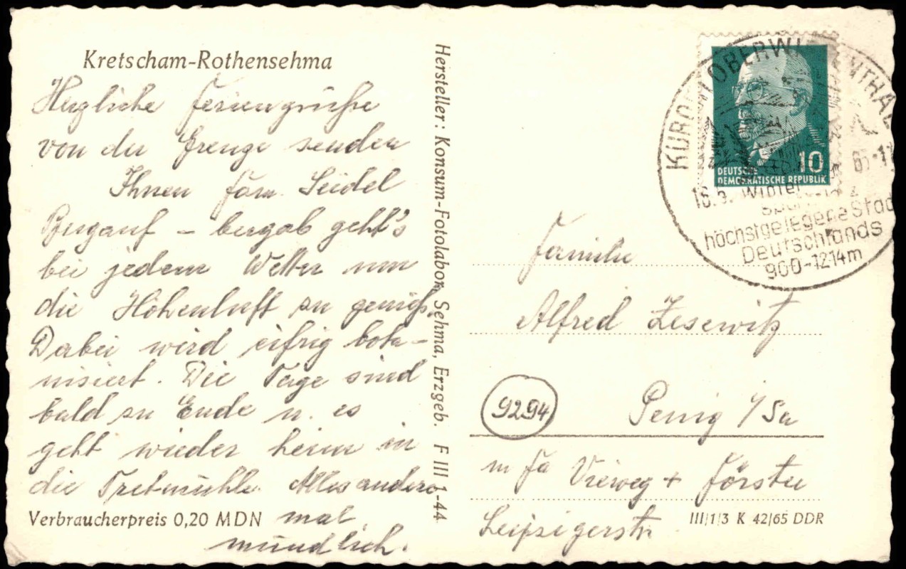 Photo Card: Panorama-Ansicht Totalansicht zur DDR-Zeit - Kretscham-Rothensehma-Neudorf (Erzgebirge)