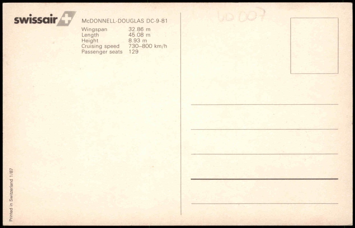 Photo Card: Flugzeug Airplane Avion MCDONNELL-DOUGLAS DC-9-81 swissair