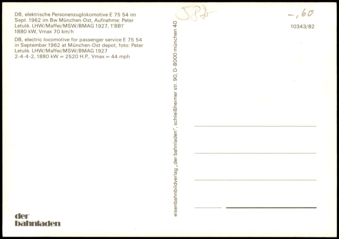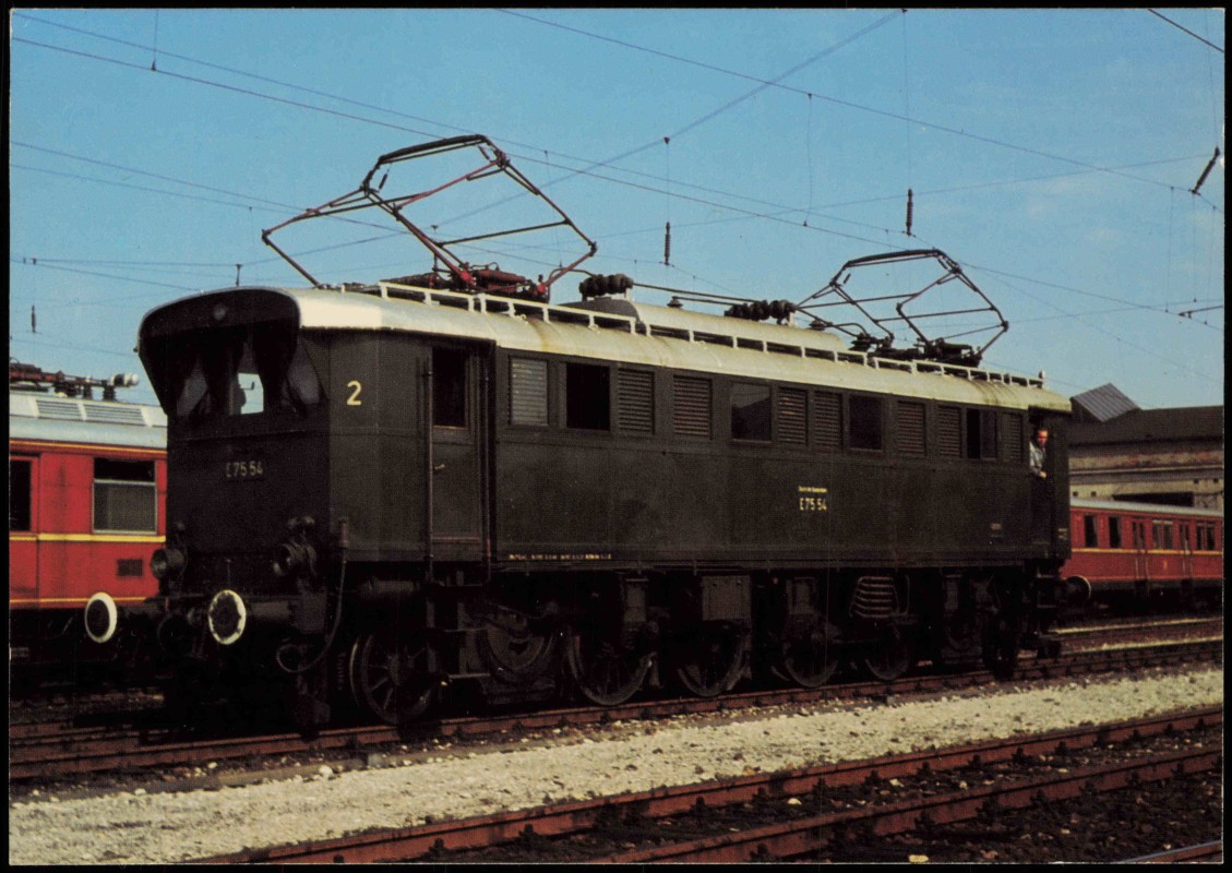 Photo Card: DB elektrische Personenzuglokomotive E 75 54 im Bw München-Ost