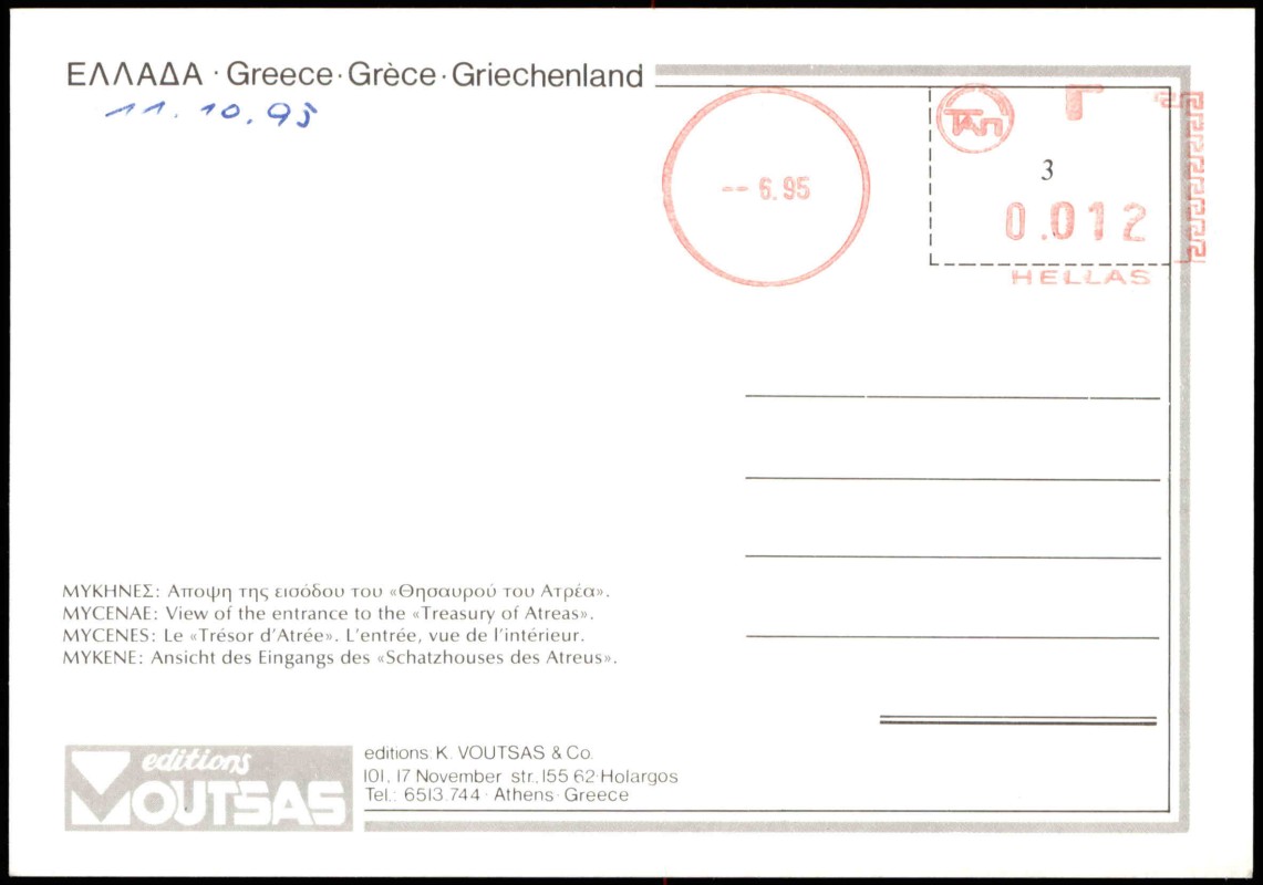 Postcart: MYCENAE: View of the entrance to the Treasury of Atreas - .Griechenland