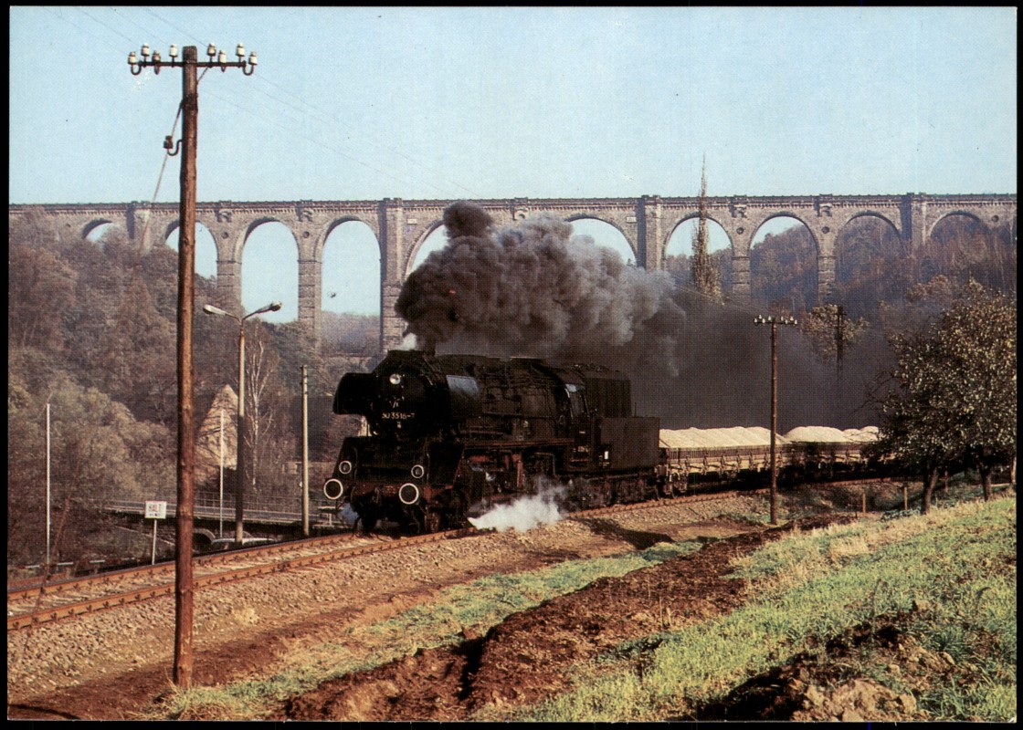 Postcart: Göhrener Viadukt mit Dampflok - Wechselburg