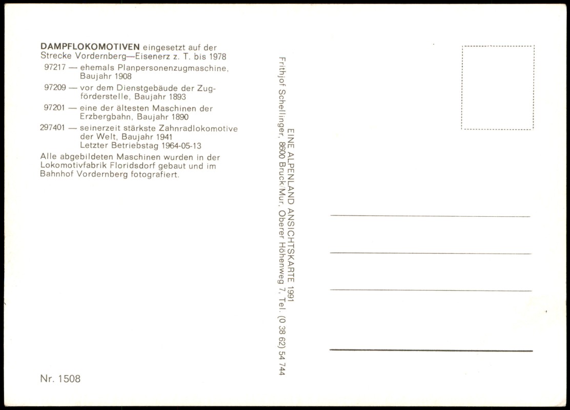 Postcart: 4 Bild Dampflokomotive Eisenbahnfreunde Vordernberg Eisenerz