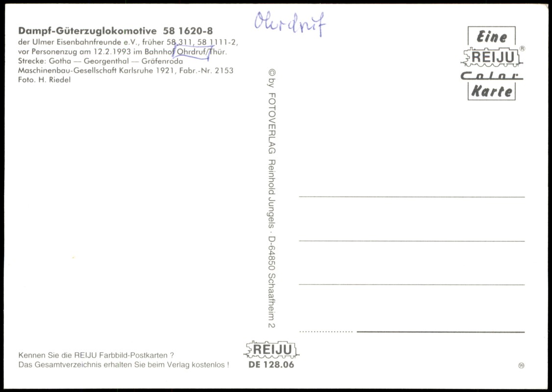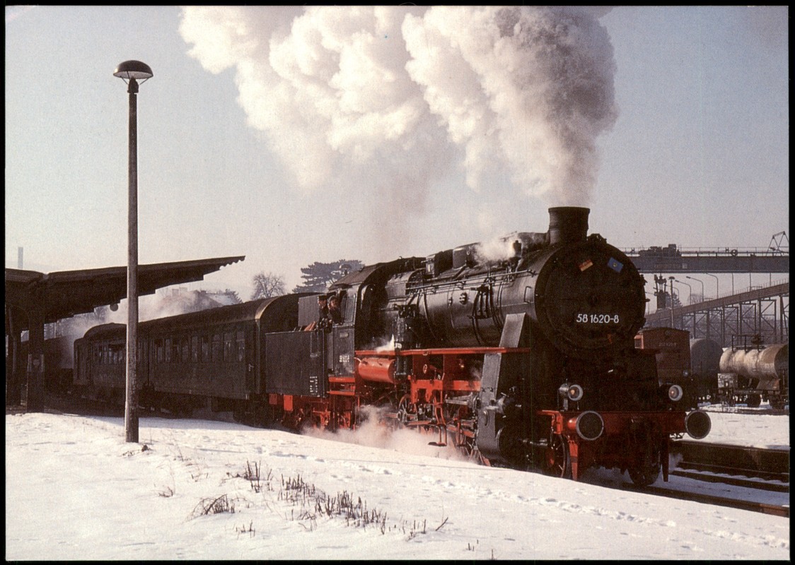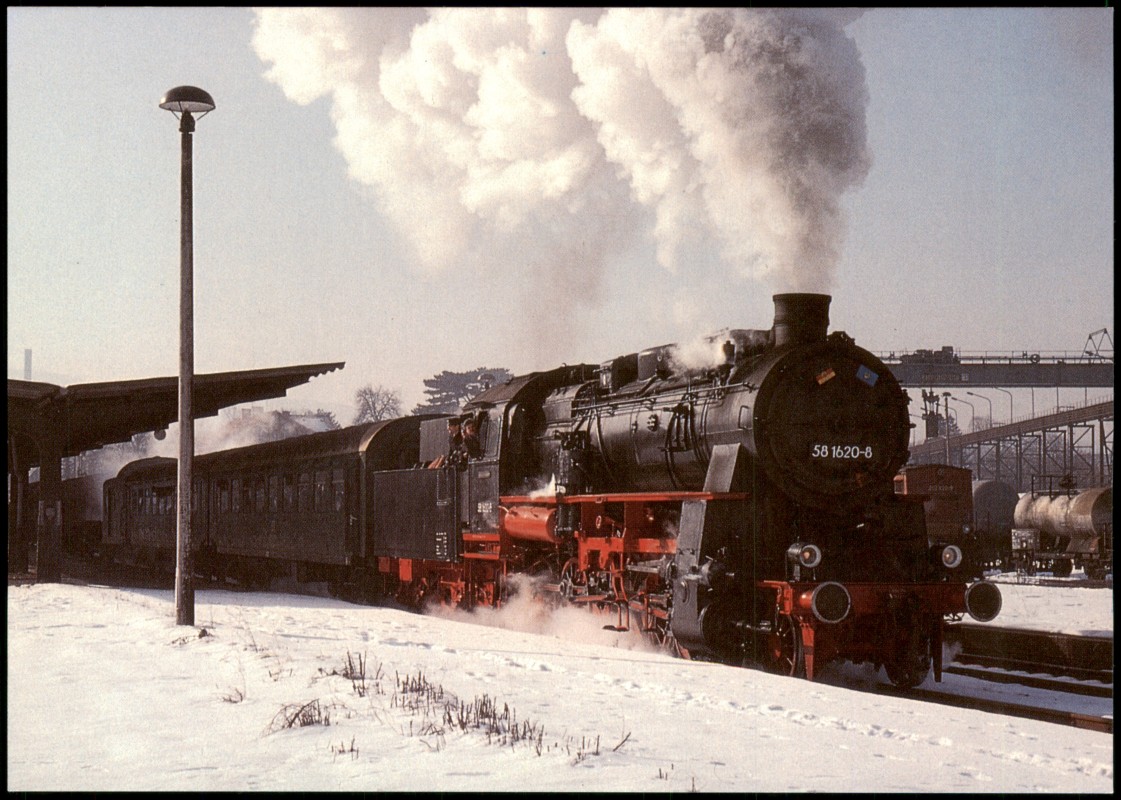 Postcart: Dampflokomotive Bahnhof Ohrdruf im Winter