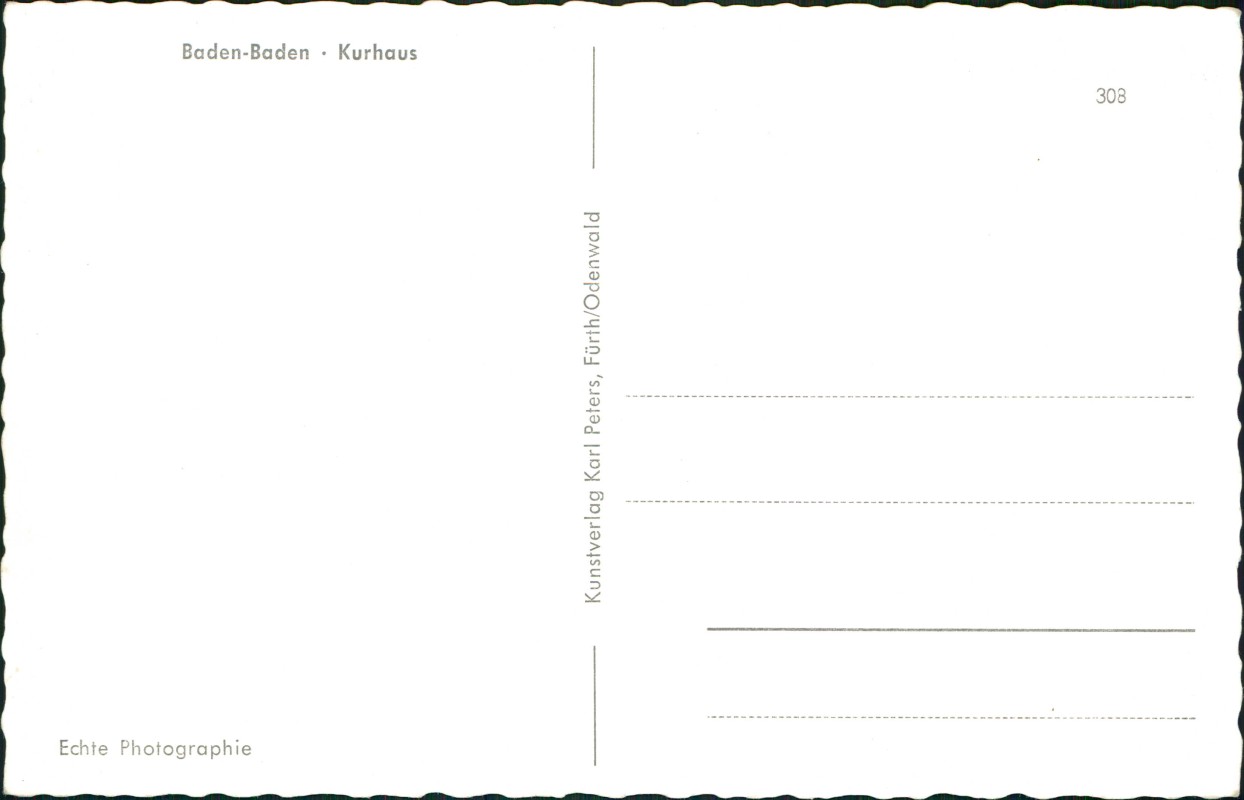 Postcart: Kurhaus - Fotokarte - Baden-Baden