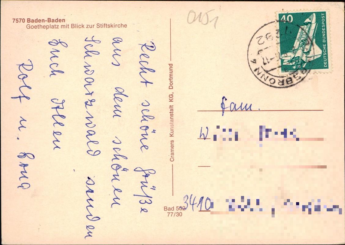 Postcart: Goetheplatz Geschäft Photo Kohn - Baden-Baden
