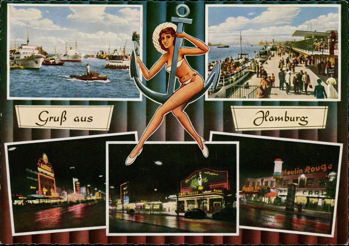 Postcart: Reeperbahn Hafeb - Frau in Bikini - St. Pauli-Hamburg