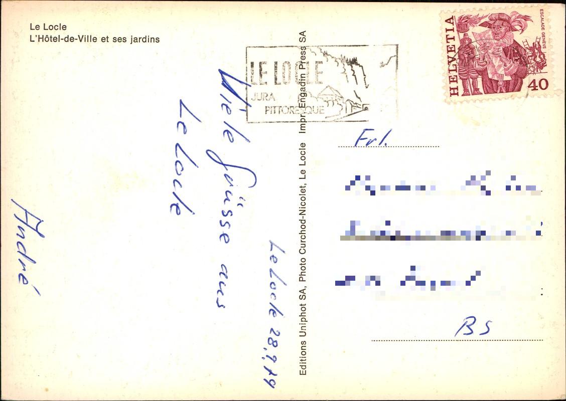 Postcart: L'Hôtel-de-Ville et ses jardins - Le Locle