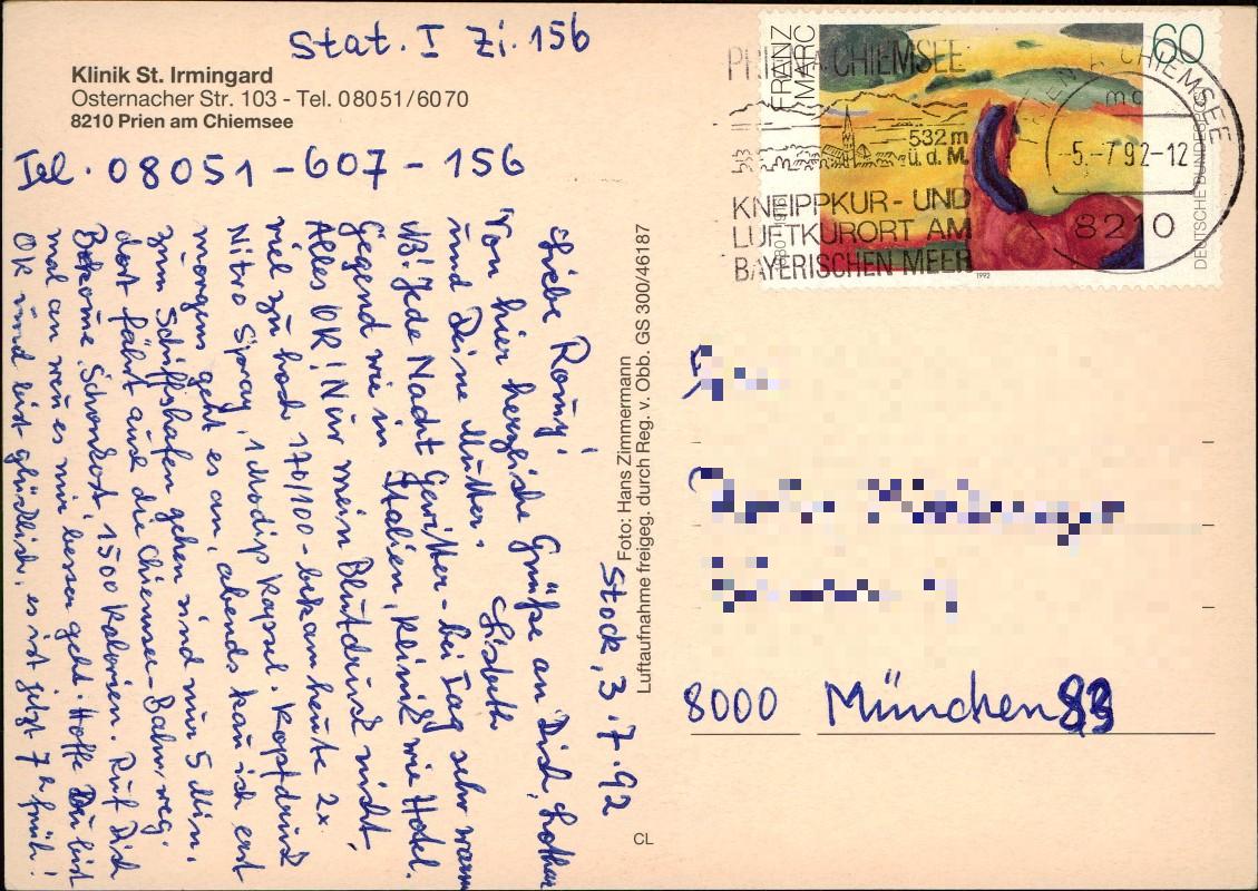 Photo Card: Klinik St. Irmingard vom Flugzeug aus, Luftaufnahme - Prien
