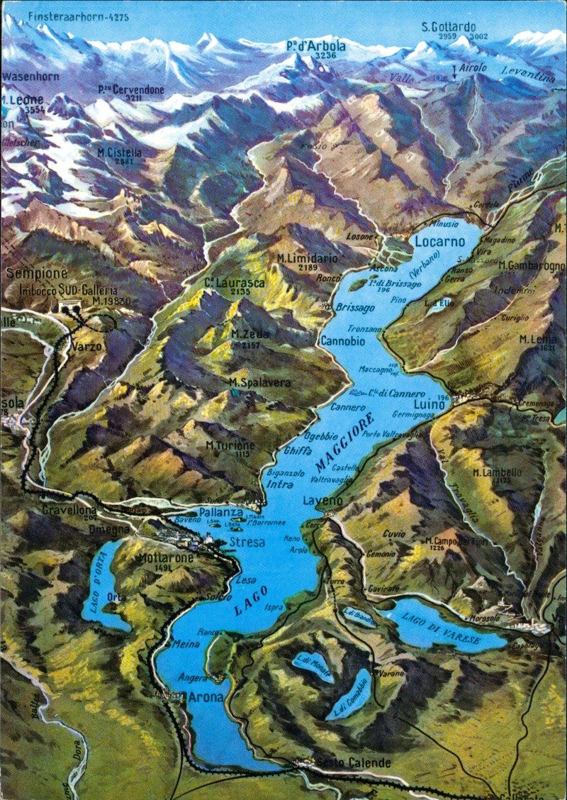 Photo Card: Lago Maggiore (Italien) Relief-Karte Umland-Berge - Italy