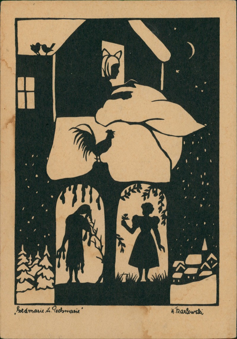 Postcart: Schattenschnit Märchen Fairy Tale Frau Halle Goldmarie