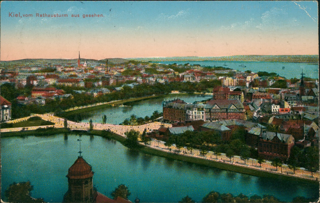 Postcart: vom Rathausturm aus gesehen. - Kiel