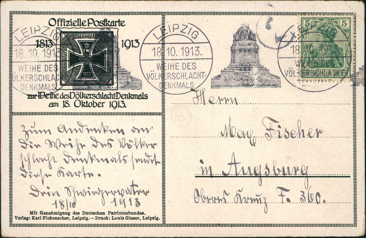 Postcart: Völkerschlachtdenkmal Weihe Sonnenaufgang - Leipzig