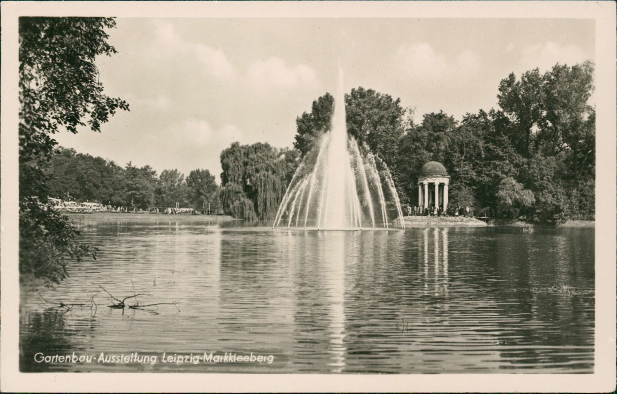 Postcart: Gartenbau-Austellung Pavillon Fontaine - Markkleeberg