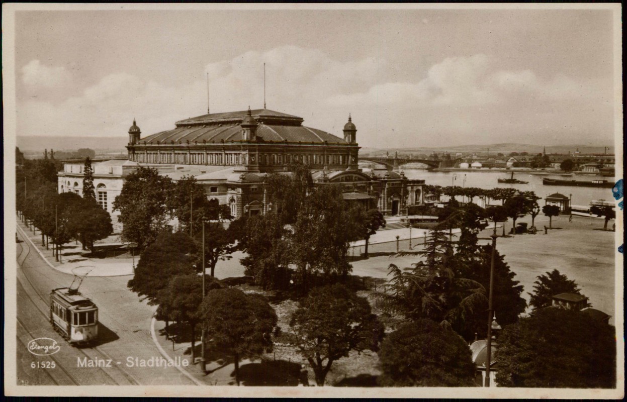Postcart: Stadthalle, Straßenpartie Straßenbahn Fotokarte - Mainz