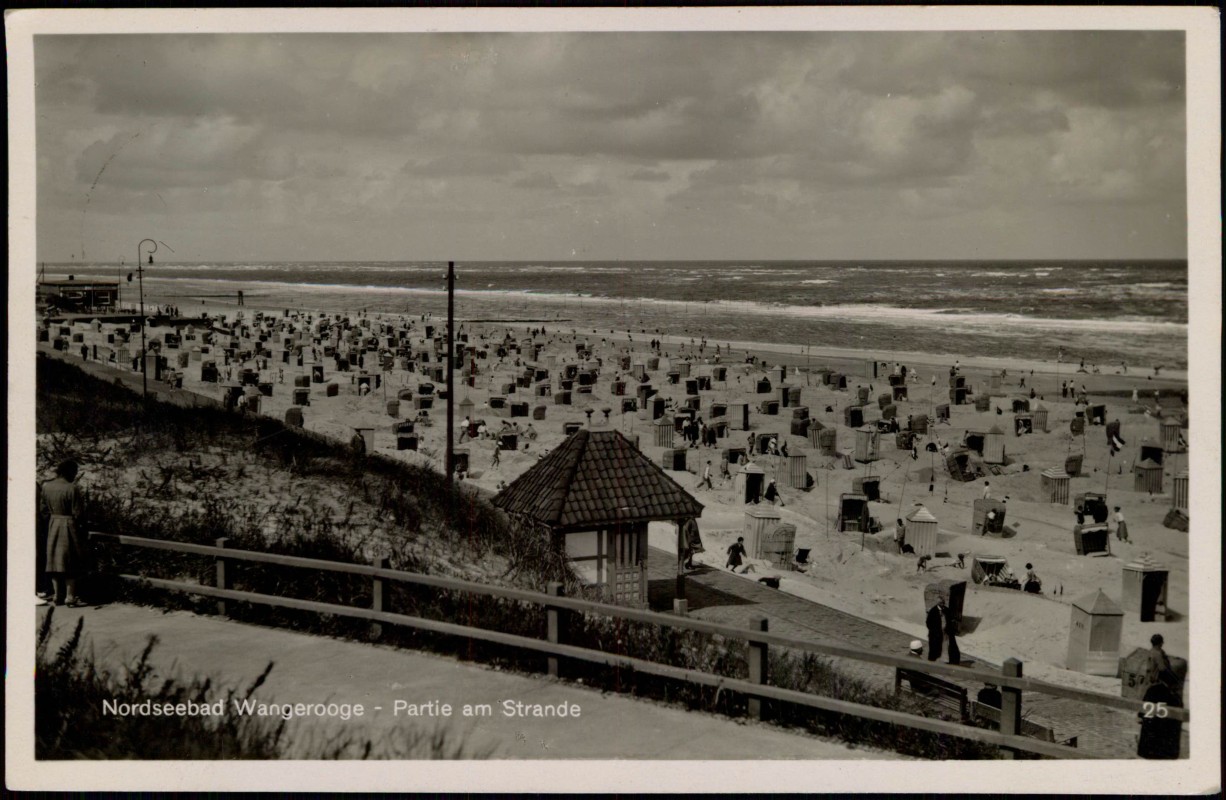 Postcart: Partie am Strande Strandhalle Strandkörbe - Wangerooge
