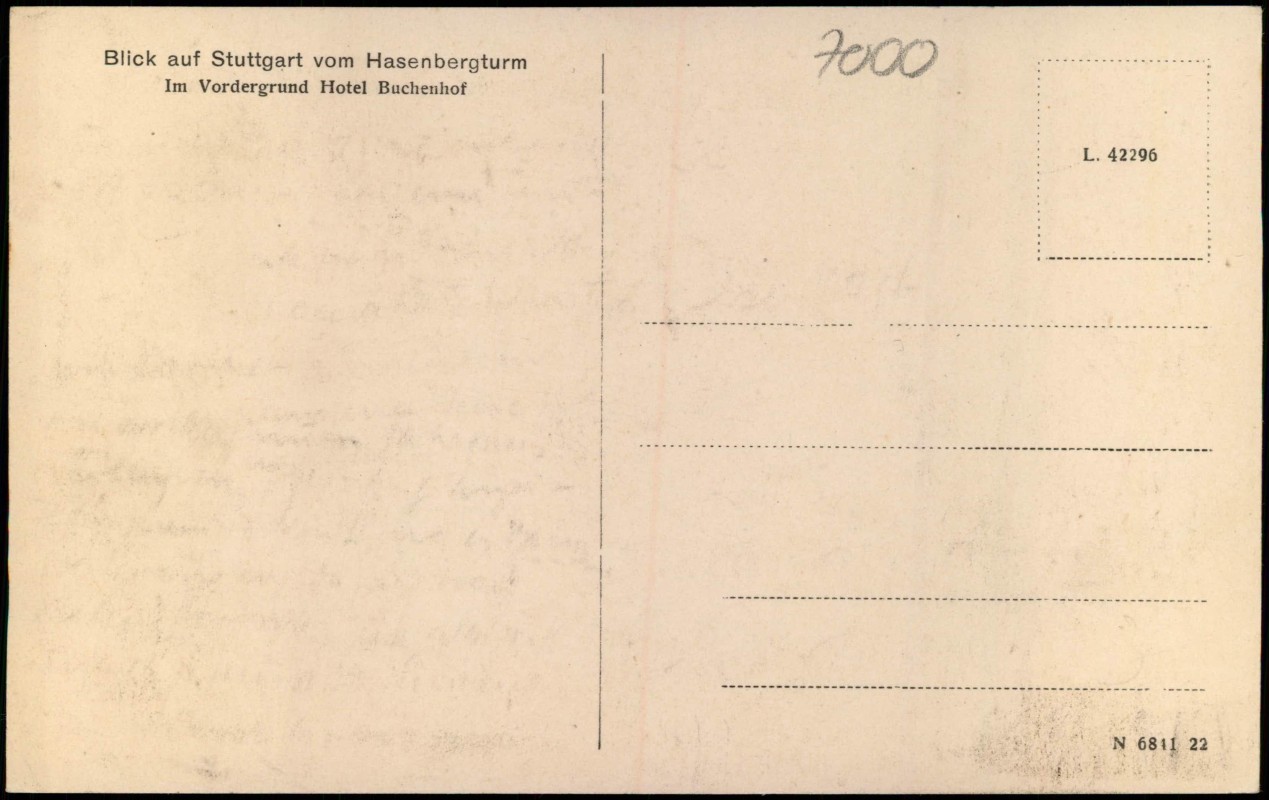Postcart: Blick vom Hasenbergturm, Hotel Buchenhof - Stuttgart