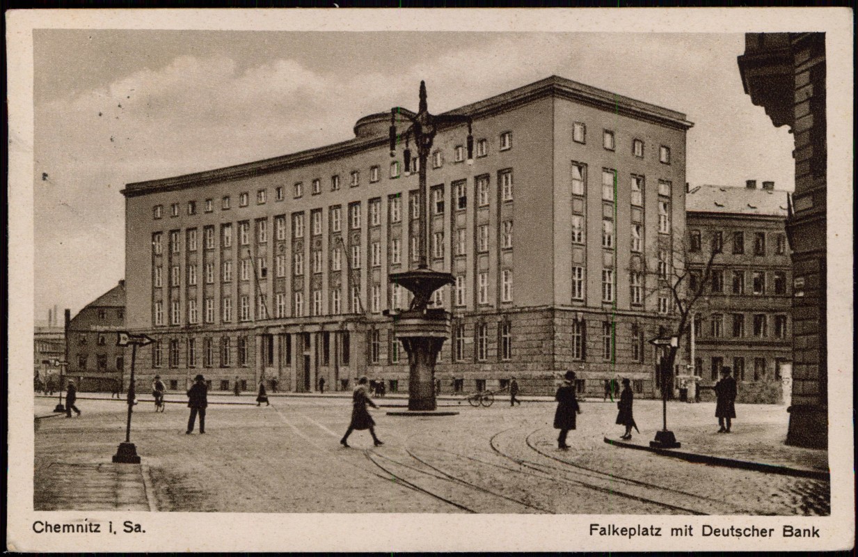 Postcart: Falkeplatz mit Deutscher Bank - Chemnitz