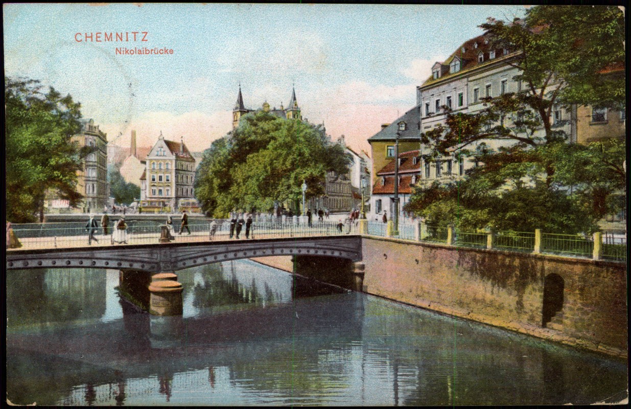 Postcart: Straßenpartie an der Nicolaibrücke - Chemnitz