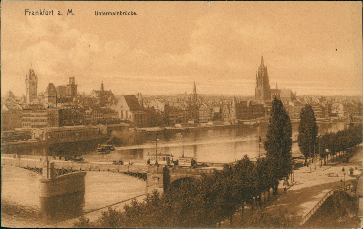 Postcart: Untermainbrücke. Tram Stadt - Frankfurt am Main