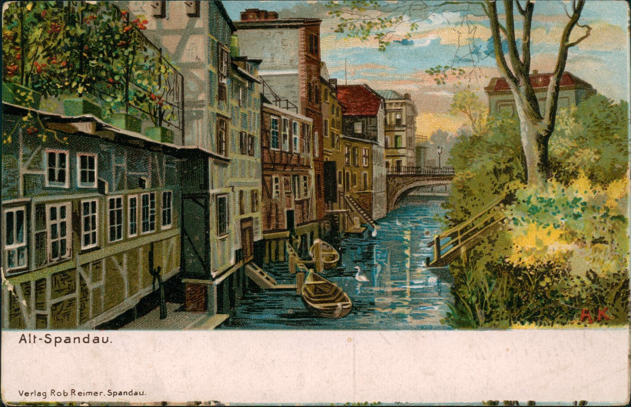 Postcart: Partie am Fluß Häuser - Spandau-Berlin