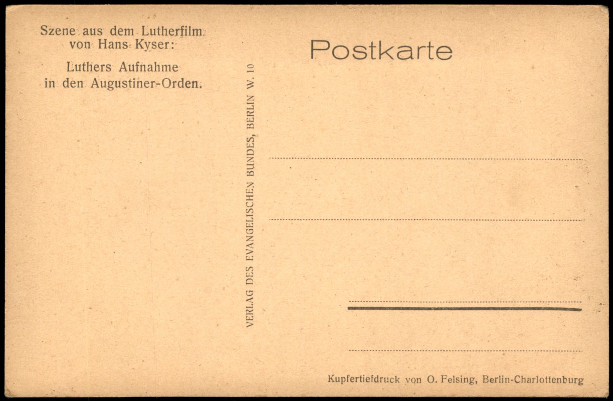 Photo Card: Szene aus Lutherfilm Hans Kyser Luthers Aufnahmein den Augustiner-Orden