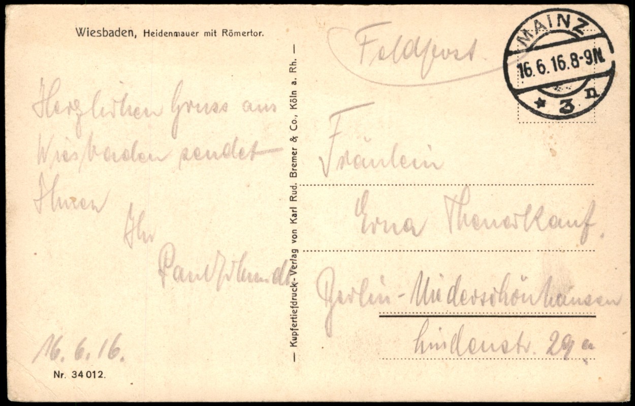 Photo Card: Heidenmauer mit Römertor - Wiesbaden