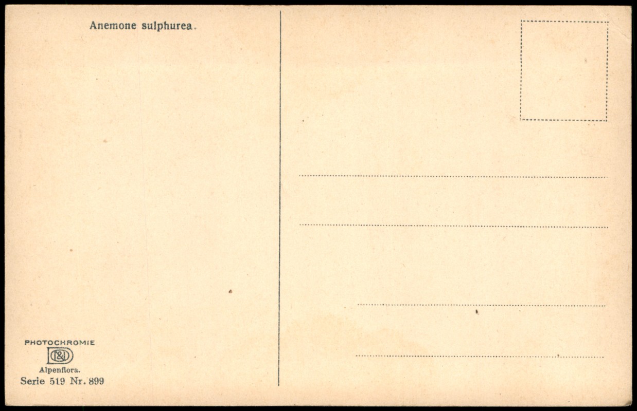 Postcart: Botanik Anemone sulphurea. Alpenflora. PHOTOCHROMIE