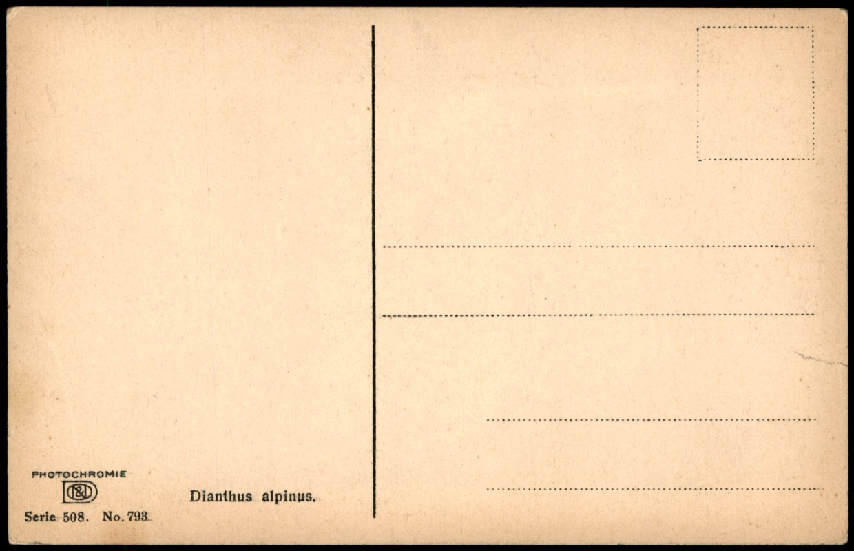 Postcart: Botanik Dianthus alpinus. PHOTOCHROMIE Alpen Pflanzen