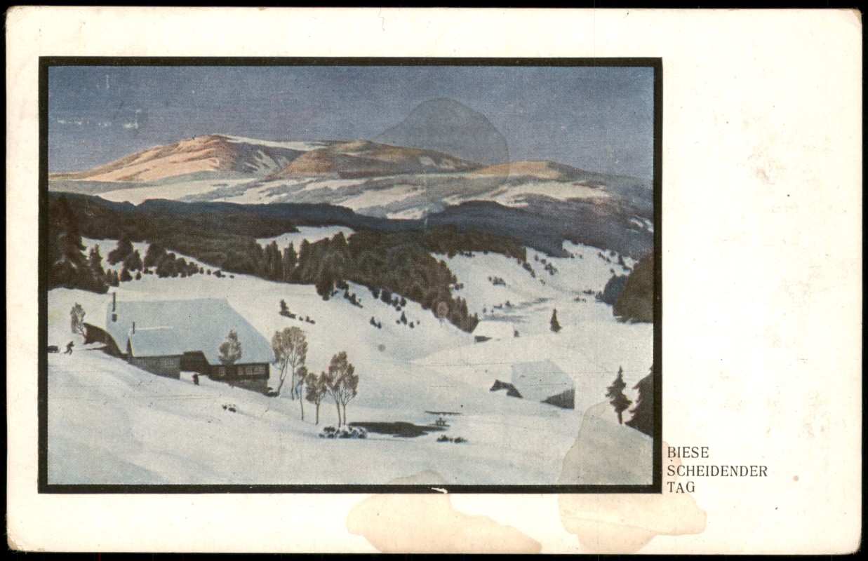 - Winter-Ansichtskarte Stimmungsbild Künstlerkarte Biese scheidender Tag