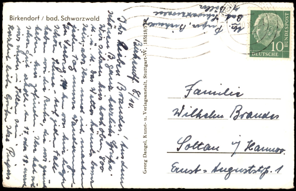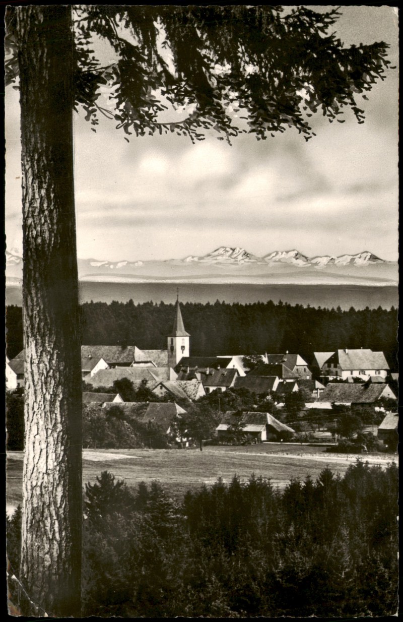Postcart: Stadtpartie mit Bergkette - Birkendorf-Ühlingen-Birkendorf