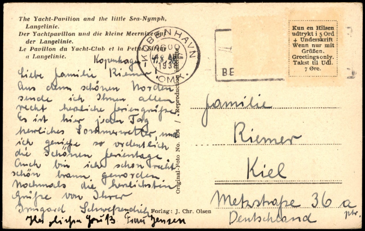 Postcart: The Yacht-Pavilion and the little Sea-Nymph, Langelinie - Copenhagen