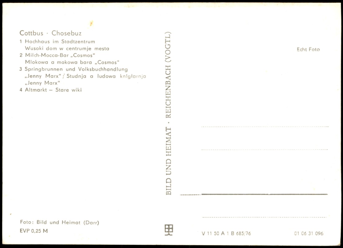 Photo Card: DDR Mehrbild-AK ua. Milch-Bar Cosmos, Volksbuchhandlung Jenny Marx uvm. - Cottbus