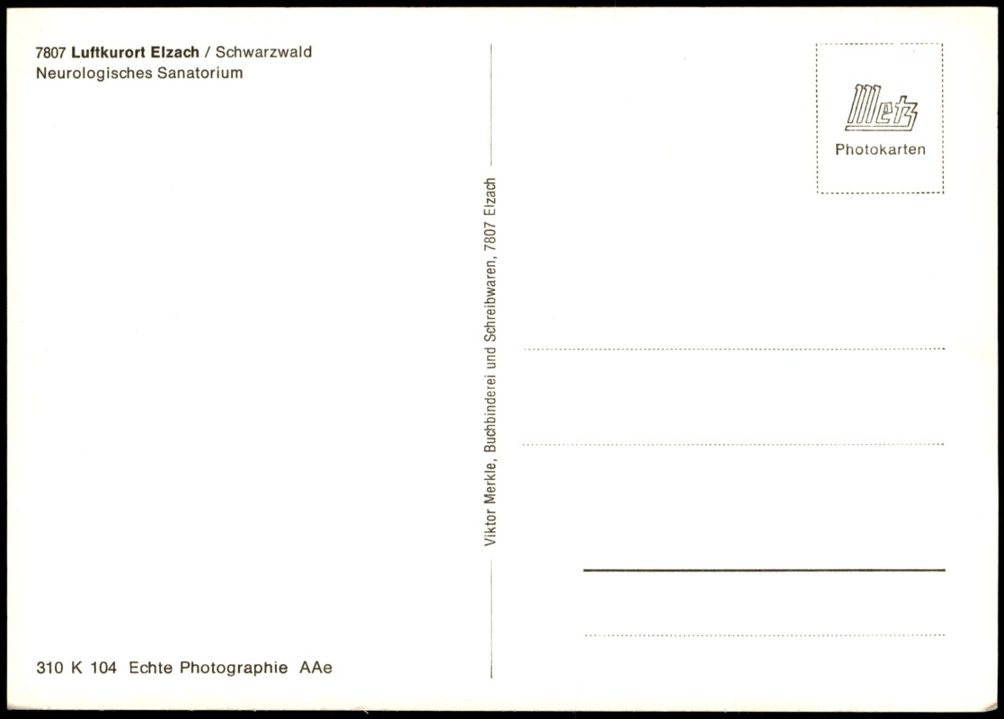 Postcart: Schwarzwald Neurologisches Sanatorium. - Elzach