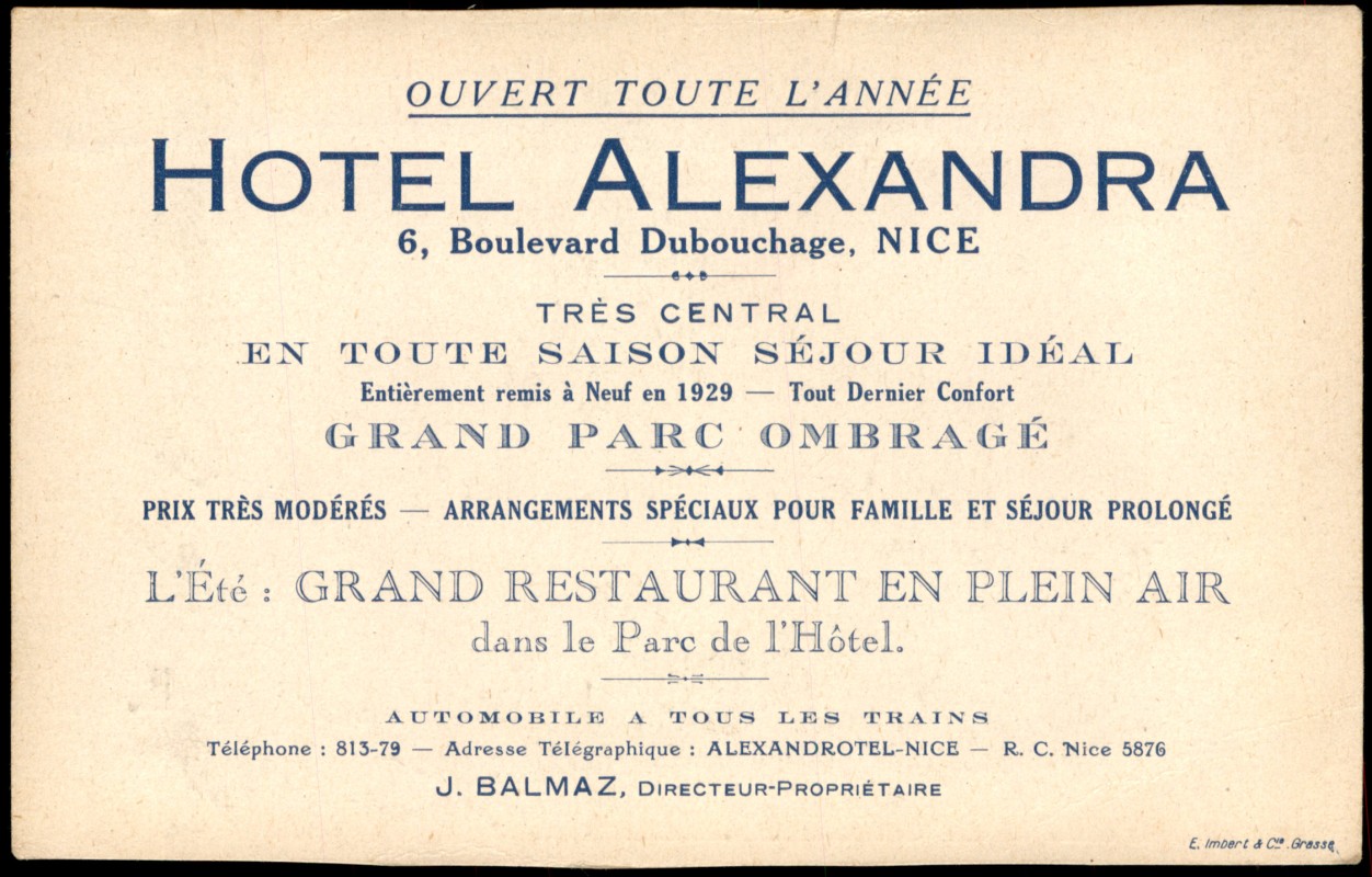 Postcart: RESTAURANT D'ETE HOTEL ALEXANDRA - Nice