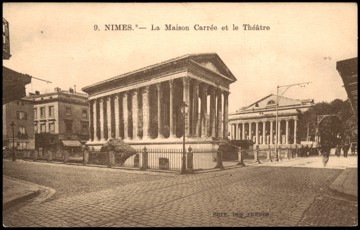 vintage Postcard from 1910: La Maison Carrée et le Théâtre:: Nîmes Address side