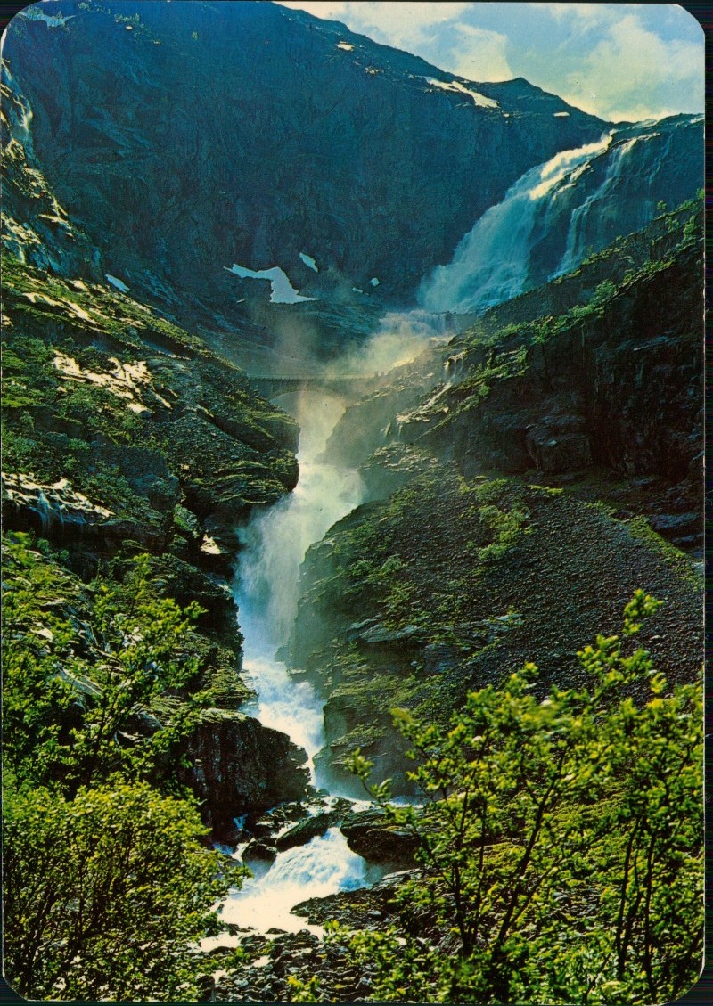 Postcart: Wasserfall in Gebirgslandschaft am Trollstigen - Åndalsnes