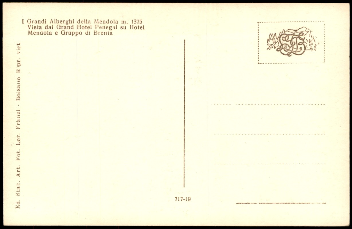 Photo Card: Trentino-Südtirol Vista dal Grand Hotel Penegal su Hotel Mendola e Gruppo di Brenta - .Trentino-Südtirol